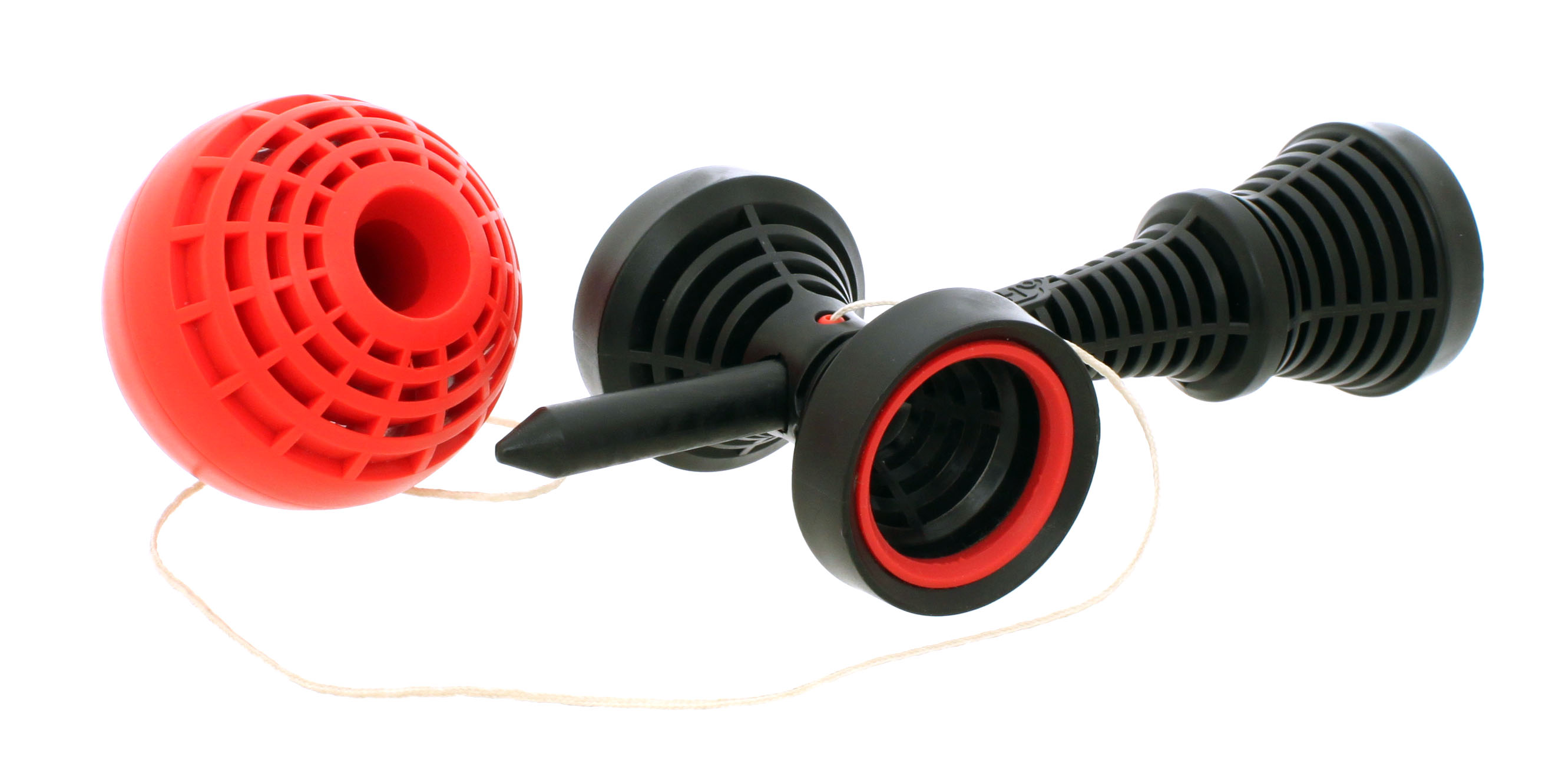 耐久性のあるエンジニアプラスチックとシリコンで構成された、まったく新しいけん玉です。丈夫なだけでなく、水に濡れても大丈夫なので、海や河原などシーンを選ばず大活躍。標準的な木製けん玉と変わらない重さ・サイズとなっているため、ライトユーザーからコアなけん玉ファンまで幅広くお楽しみいただけます。