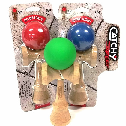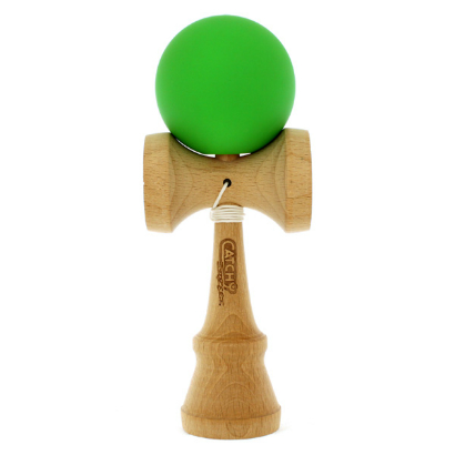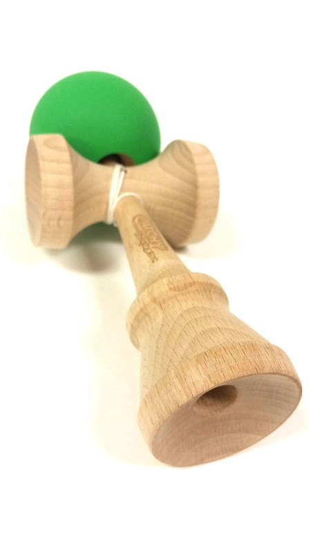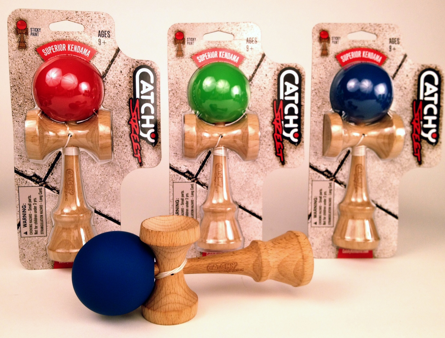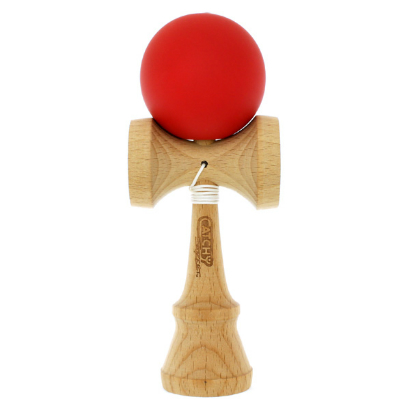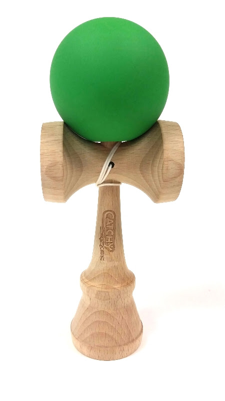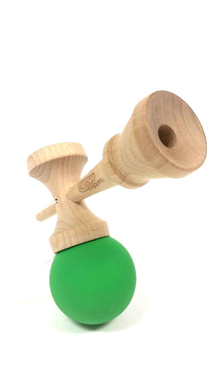 皿とタマの両方に工夫をこらしたユニークなけん玉です。皿は一般的なけん玉より大きく、タマは “スティッキーペイント” と呼ばれるラバー質のコーティングを施しました。これにより、グリップの効くタマが皿に乗せやすくなっているので、ビギナーでも技を習得しやすくなっています。また、バランスが必要とされる、より高度な技にも適しています。